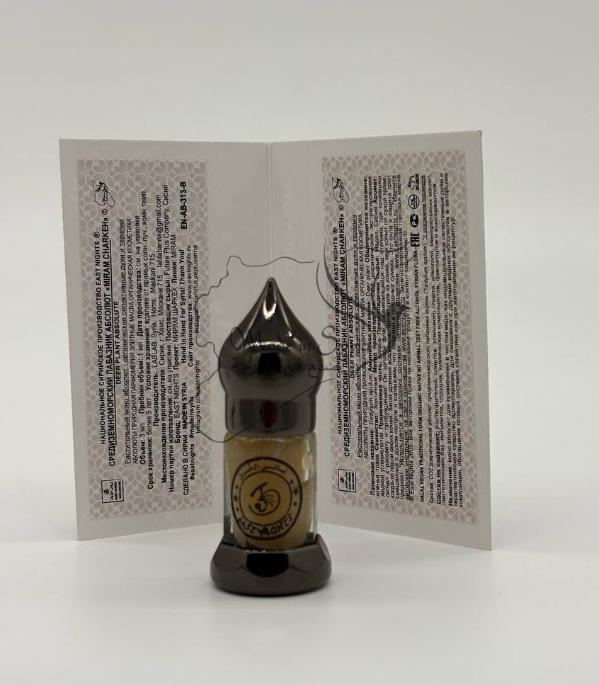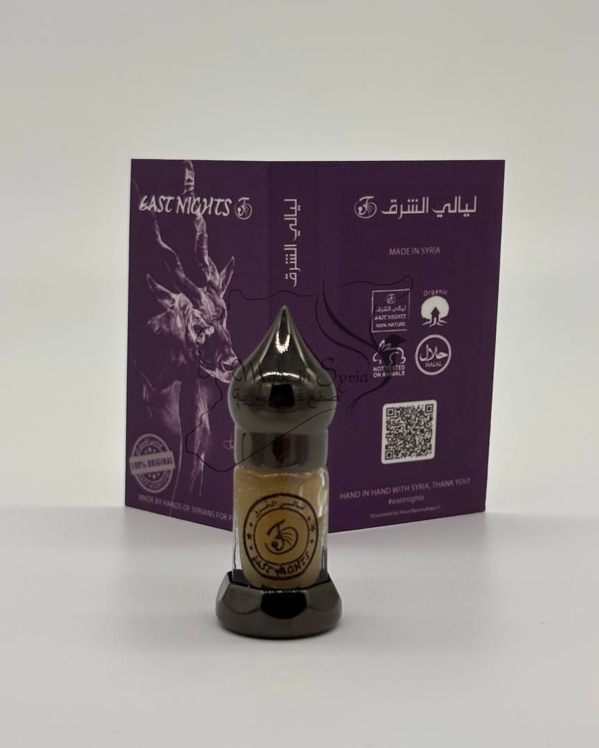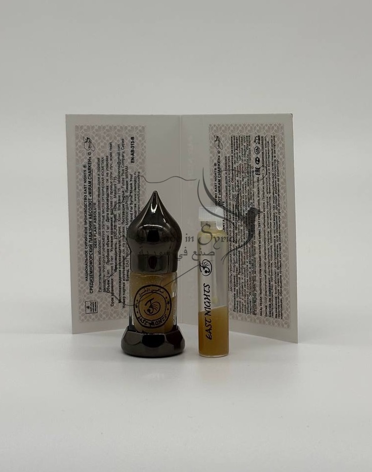 Бренд East Nights Проект East Nights Линия Miram Charkeh Обьем 3 мл. Производство LABLAB Syria, Homs, Maskani 715 Место нахождения производства Сирия, город Хомс, Маскани 715 Страна происхождения сырья Мадая, Сирия Поставщик сырья Future Plus Company, Syria, Homs