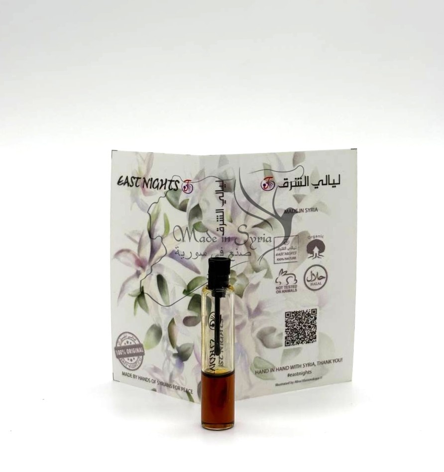 Бренд East Nights Проект East Nights Линия Hadi Charkeh Обьем 1 мл. Производство LABLAB Syria, Homs, Maskani 715 Место нахождения производства Сирия, город Хомс, Маскани 715 Страна происхождения сырья : Брумманет аль-Машайех, Латакия, Сирия Поставщик сырья Future Plus Company, Syria, Homs