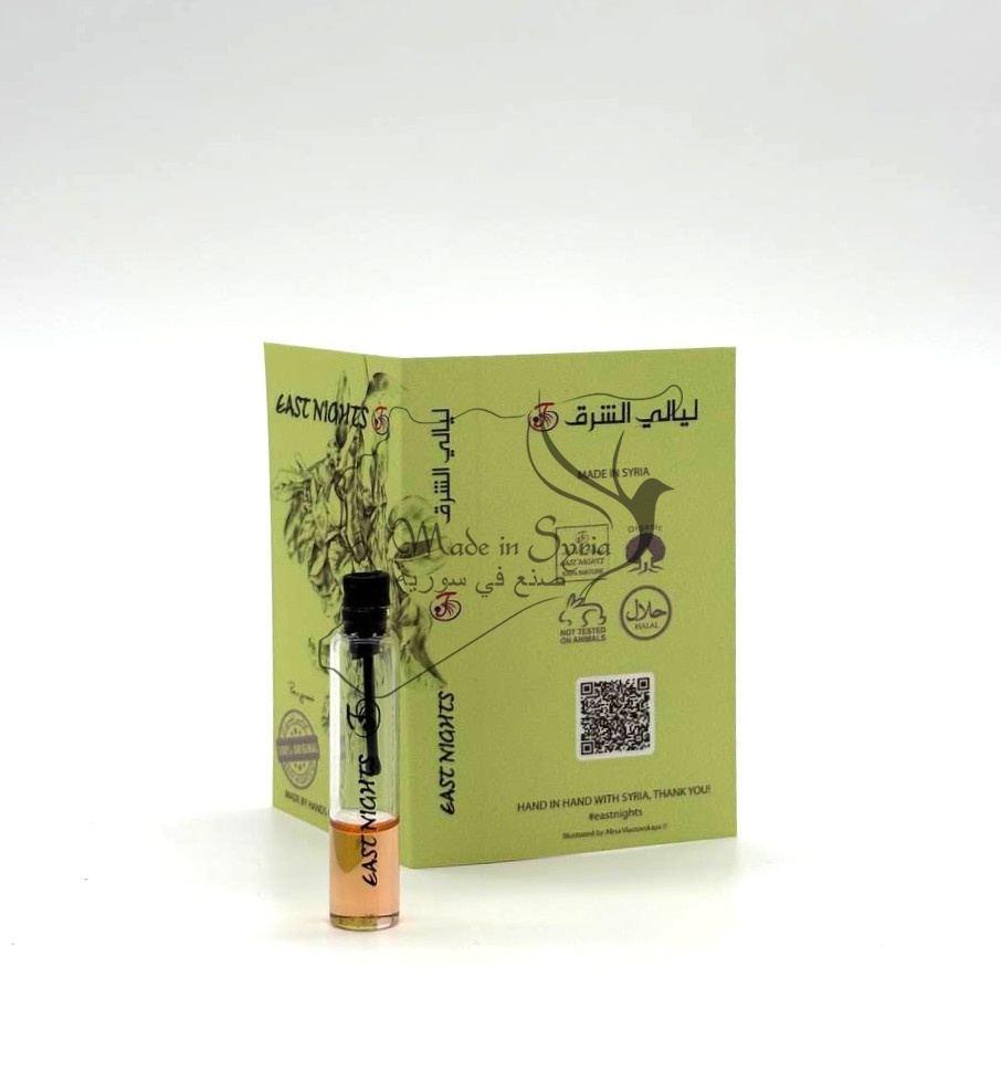 Бренд East Nights Проект East Nights Линия Amani Charkeh Обьем 1 мл. Производство LABLAB Syria, Homs, Maskani 715 Место нахождения производства Сирия, город Хомс, Маскани 715 Страна происхождения сырья Коччи, Индия Поставщик сырья Future Plus Company, Syria, Homs