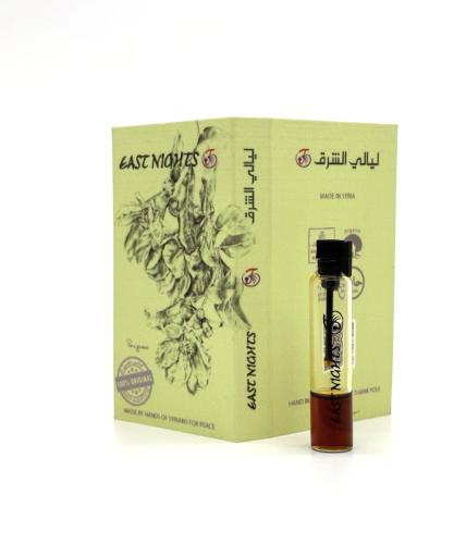 Бренд East Nights Проект EAST NIGHTS Линия AMANI Обьем 1 мл. Производство LABLAB Syria, Homs, Maskani 715 Место нахождения производства Сирия, г.Хомс, Маскани 715 Страна происхождения сырья провинция Мухаррам-эль-Фаукани, Хомс, Сирия Поставщик сырья Future Plus Company, Syria
