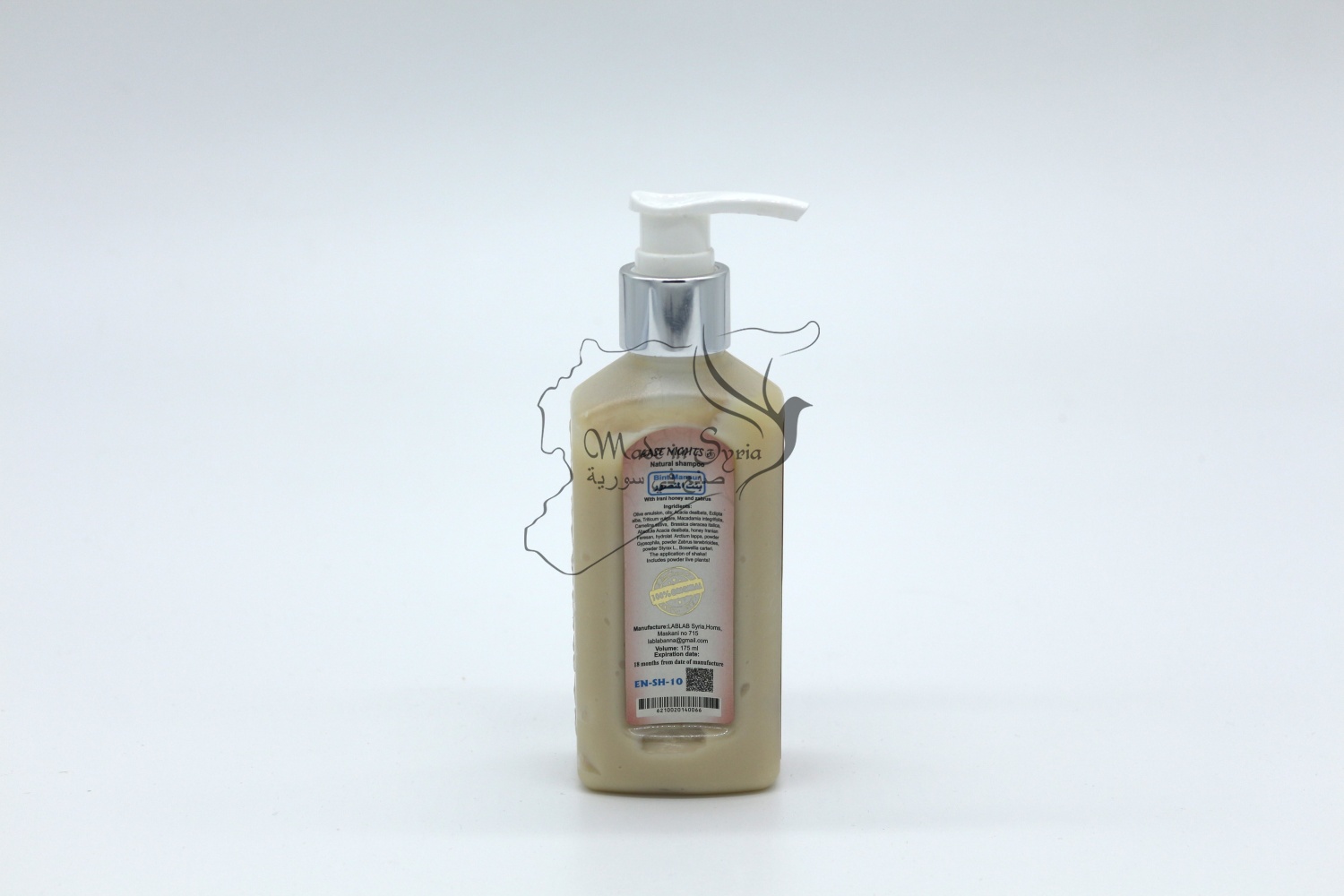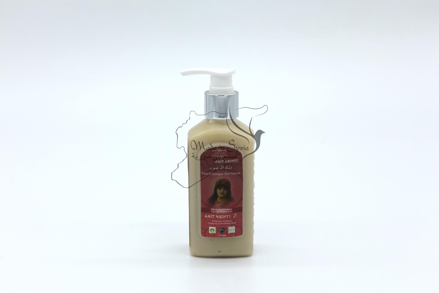 Натуральный шампунь Bint Mansur «Дочь победителя» c иранским медом и забрусом создан технологами Национального сирийского производства восточной косметики East Nights для устранения выпадения волос. Улучшает кислородный обмен в клетках кожи головы, восстанавливает структуру волос, устраняет ломкость и признаки сухости. Волосы начинают расти интенсивнее, при этом становятся крепче, плотнее, объемнее, устойчивее к повреждениям. Шампунь питает фолликулы волос и активно регенерирует клетки.