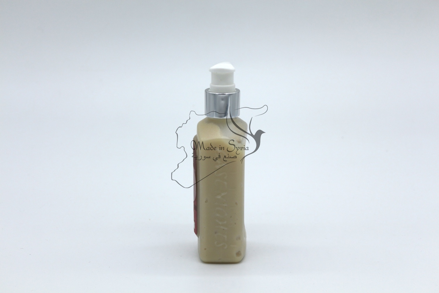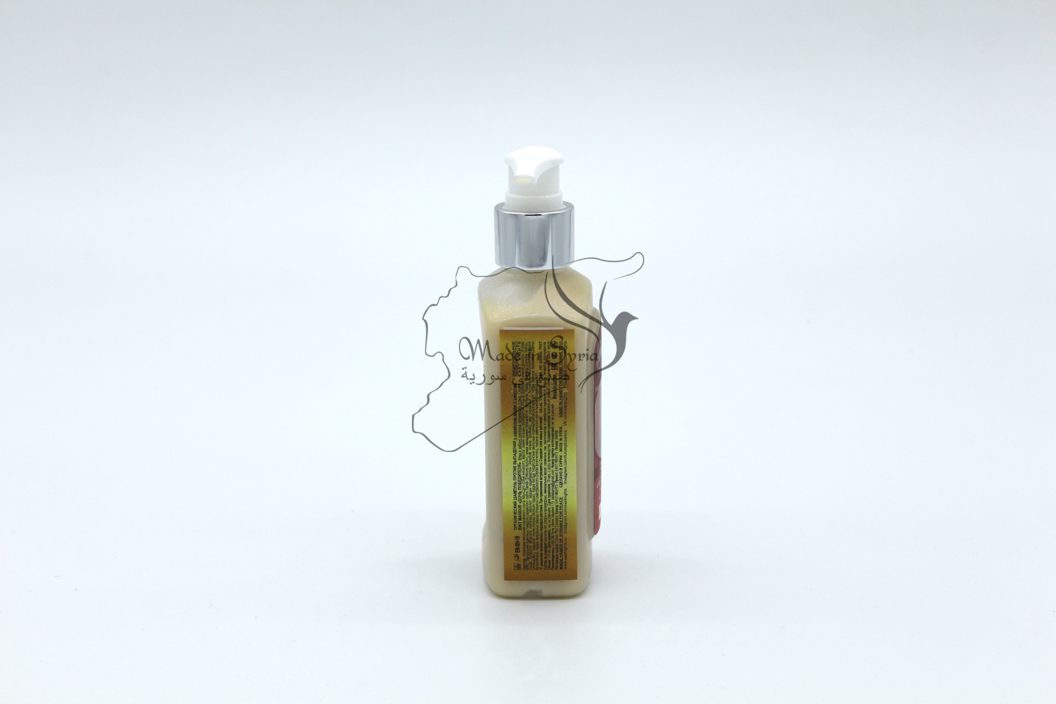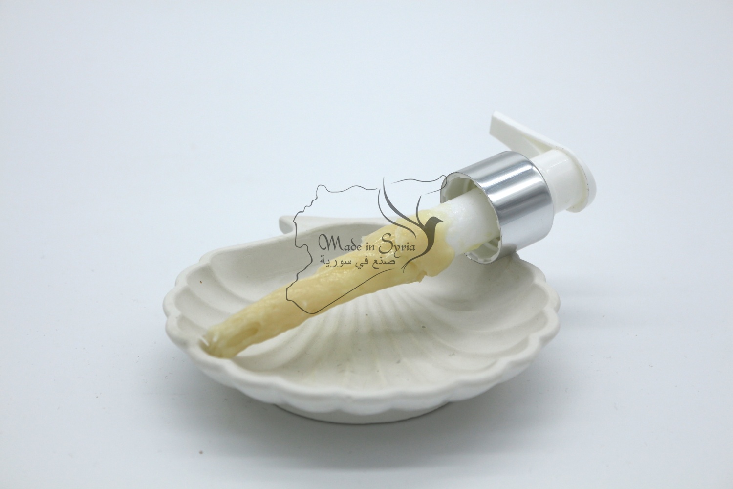 Состав: оливковая эмульсия сирийского сорта Абу-Сатл (Olive emulsion), масла: семян акации серебристой (Acacia dealbata), семян эклипты белой (Eclipta alba), зародышей пшеницы мягкой сирийского сорта Tiamik (Triticum vulgare), ореха макадамии (Macadamia integrifolia), семян камелии (Camellia Sativa), семян брокколи (Brassica oleracea), абсолют акации серебристой (Absolute Acacia dealbata), мед иранский ферасанский (Honey Iranian Feresan), гидролат корня лопуха (Arctium lappa), пудра - белый мыльный корень качима метельчатого (powder Gypsophila), пудра забруса пчелиного (Zabrus tenebrioides), пудра природной смолы стиракса лекарственного (Styrax L.), пудра ладана оманского сорта Azeiba (Boswellia carteri). *С указанием используемых подвидов растений
