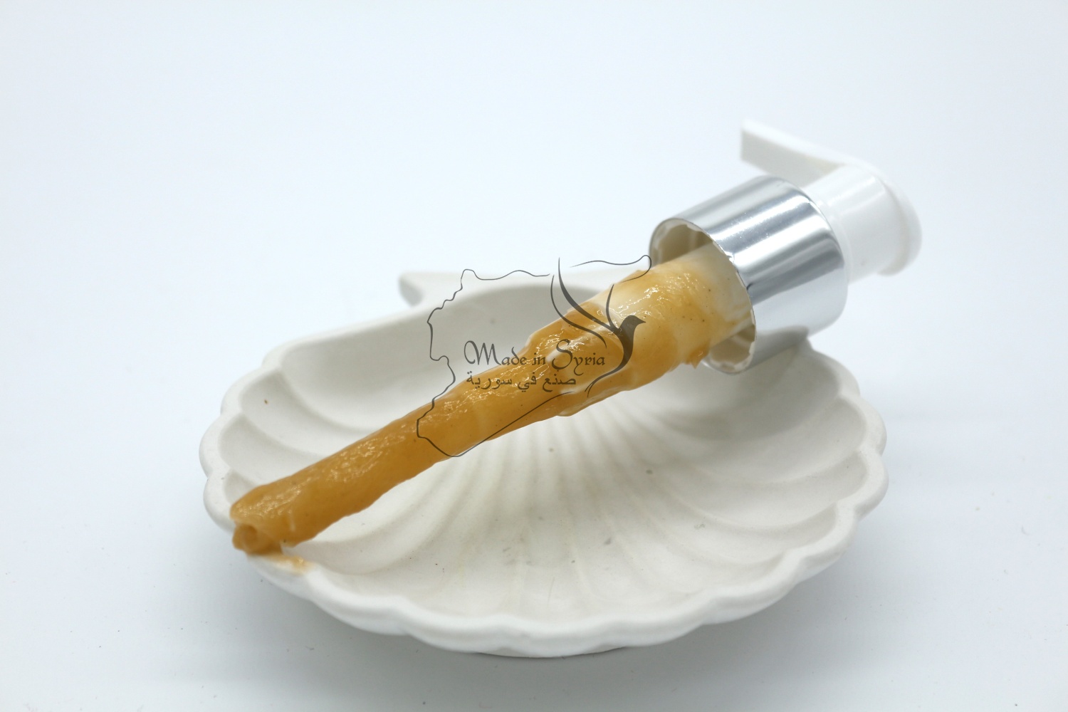Состав: оливковая эмульсия - сирийский сорт оливки Абу-Сатл (Olive emulsion), масла первого холодного отжима: каранджи семена (Pongamia Glabra), рис отруби (Oryza sativa Iran), дыня калахари семена (Citrullus vulgaris), фисташка алеппская (Pistachia vera), опунция семена (Opuntia ficus Indica), мякоть косточек авокадо (Persea Americana), смоляная часть - эмульгация и консервация состава: масло природной смолы копала белого (Buresera odorata), гидролат - паровая дистилляция сырья: календулы соцветий (Calendula officinalis), пудра: красный мыльный корень (Saponariae officinalis). *С указанием подвидов растений