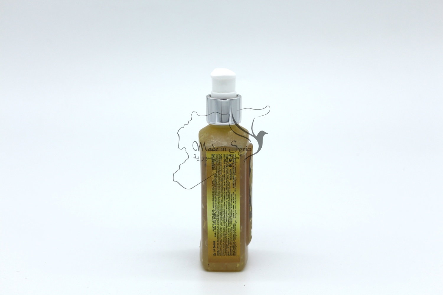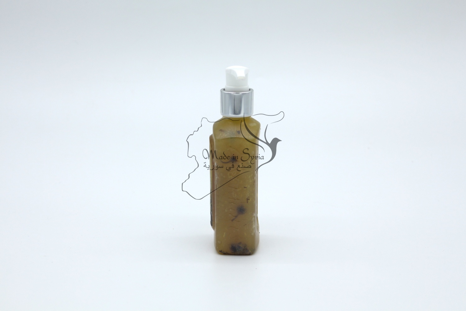 Состав: оливковая эмульсия сирийского сорта оливки Абу-Сатл (Olive emulsion), масла: бесцветной иранской хны (Cassia Obovata), соцветий липы (Tilia europaea), зародышей пшеницы мягкой (Triticum vulgare), листьев лавра сирийского (Laurus nobilis), ядер сладкого миндаля (Prunus amygdalus), косточек винограда сирийского сорта Малагский синий (Vitis vinifera), пудра: зародышей пшеницы мягкой (Triticum vulgare), корень качима - белый мыльный корень (Gypsophila), гидролат листьев сирийской мушмулы (Eriobotrya japonica), молочко ядер миндаля (Prunus dulcis), природная смола стиракса суматранского (Styrax L.). *С указанием подвидов растений