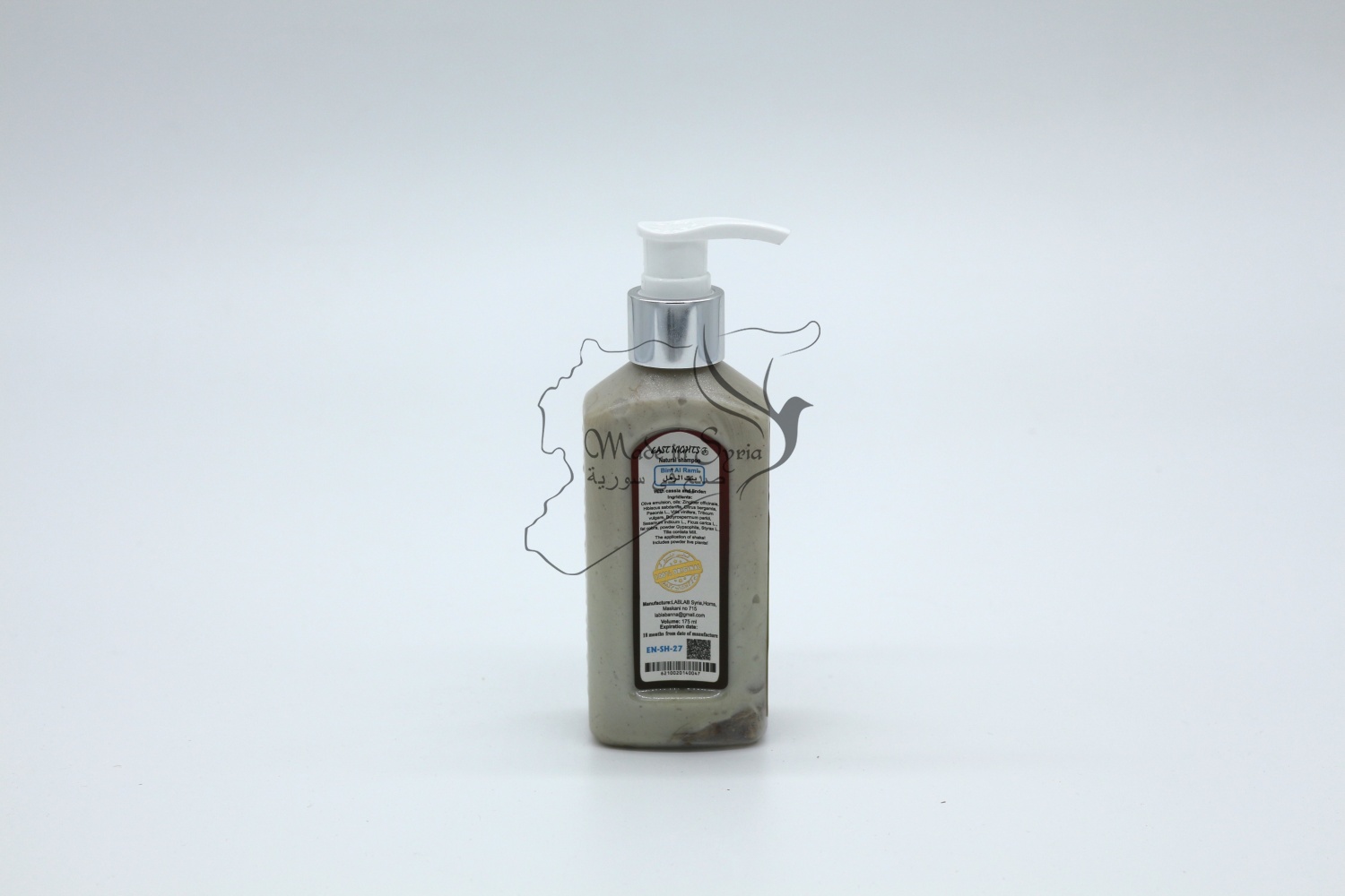 Бренд East Nights Обьем 175 мл. Производство LABLAB Syria, Homs, Maskani 715 Место нахождения производства Сирия, город Хомс, Маскани 715 Поставщик сырья Future Plus Company Syria Техническая информация:Условия хранения: вдалеке от прямых солнечных лучей при комнатной температуре